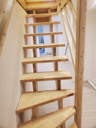 Explorez la fabrication d'escaliers en bois sur mesure, réalisés avec soin et passion.